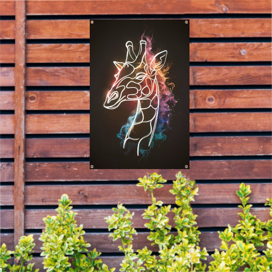 Futuristische giraffe in neonkleuren kunstwerk tuinposter