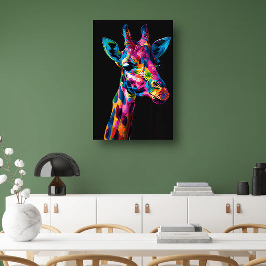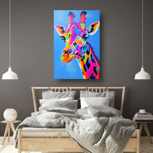Kleurrijk en opvallend giraffe popart schilderij acrylglas