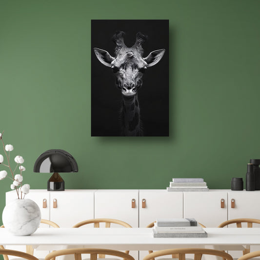Zwart-Wit Portret van Nieuwsgierige Giraffe canvas