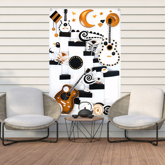 Kleurrijke Pop Art Gitaar met Maan tuinposter