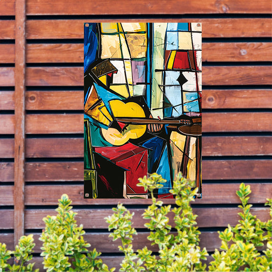 Kubistische Gitaarspeler in Levendige Kleuren tuinposter
