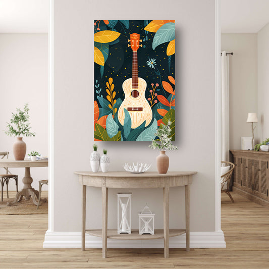 Gitaar omringd door weelderige planten canvas