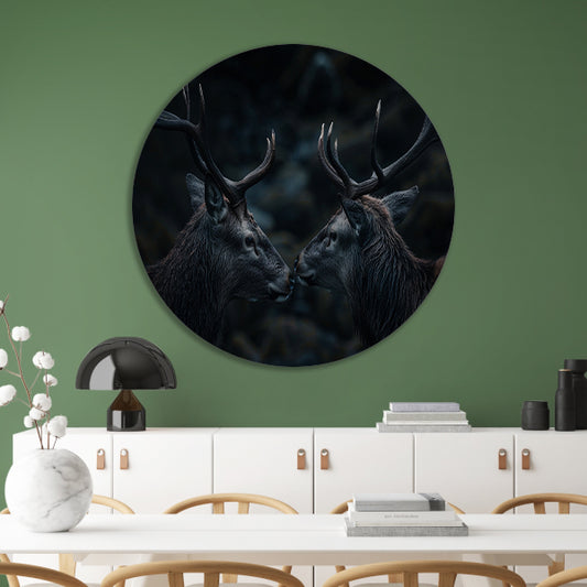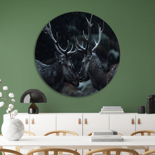 Twee herten met indrukwekkende geweien aluminium muurcirkel