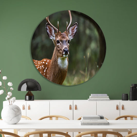 Majestueus hert in weelderig bos aluminium muurcirkel