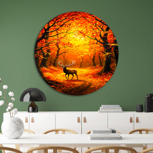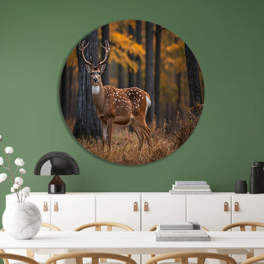 Majestueus hert in het herfstbos aluminium muurcirkel