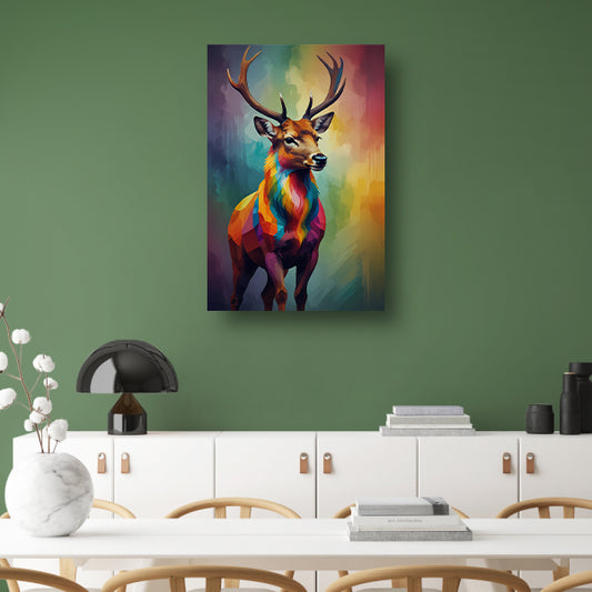 Kleurrijk hert in popart-stijl met abstracte achtergrond poster