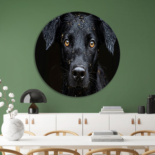 Zwarte Hond Gele Ogen aluminium muurcirkel