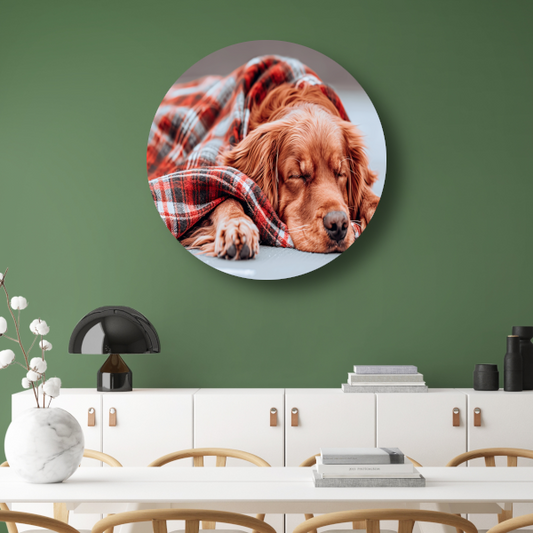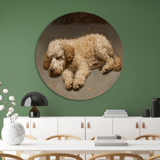 Schilderij van slapende hond in impressionistische stijl aluminium muurcirkel
