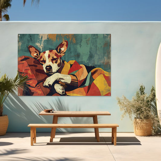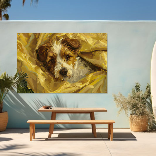 Hond tuinposters geven je buitenruimte een vrolijke en persoonlijke sfeer. Je vindt er uiteenlopende stijlen, van kleurrijke pop-art portretten en nostalgische vintage honden in kleding tot serene kunstbeelden met planten of abstracte vormen. Elke poster vangt op zijn eigen manier de charme en loyaliteit van honden. Ze zijn gemaakt van stevig, weerbestendig materiaal en uitgerust met metalen ringen, waardoor je ze moeiteloos op een schutting, muur of balkon kunt hangen. Ze blijven lang mooi, zelfs bij regen en zon. Met een hond tuinposter tover je je buitenplek eenvoudig om tot een warme, speelse oase met karakter.