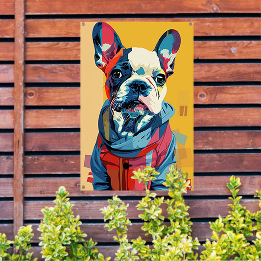 Popart Franse Bulldog in Kleurrijk Jas tuinposter