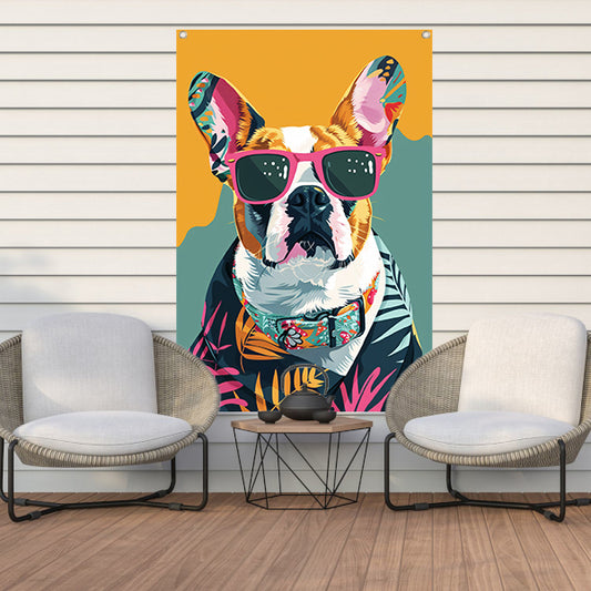 Franse Bulldog met Zonnebril en Hawaïhemd tuinposter