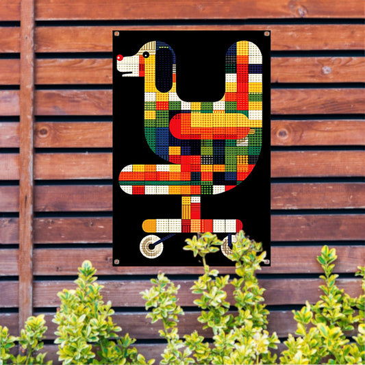 Modern Hond in Pak Kunstwerk tuinposter