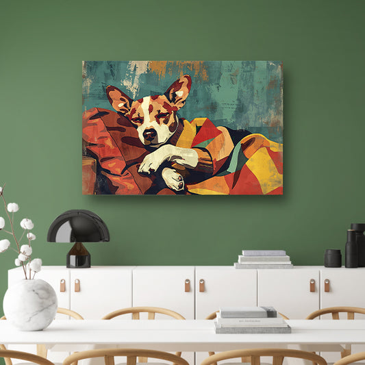 Abstracte kleurrijke hond in geometrische vlakken poster