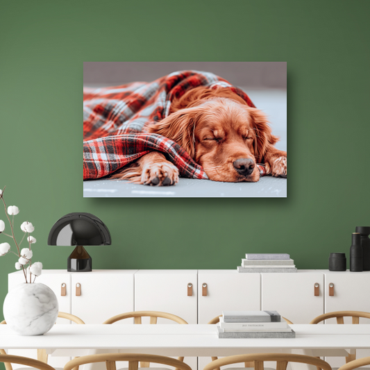 Elegante Hond met Roze Stropdas Kunst canvas met baklijst