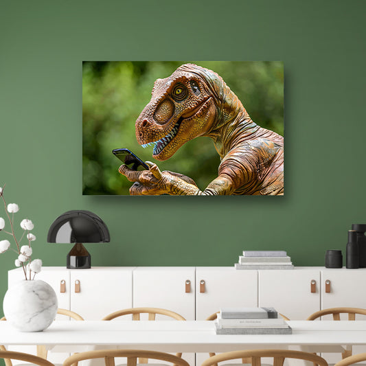 Dinosaur met smartphone in futuristische wereld acrylglas