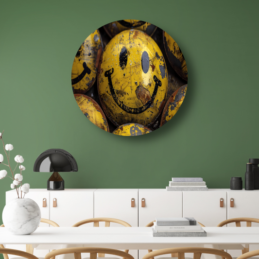 Gele Lachende Gezichten met Rustieke Charme aluminium muurcirkel