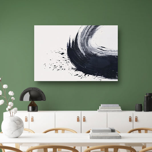 Zwarte Borstelstreek met Spetters op Wit canvas