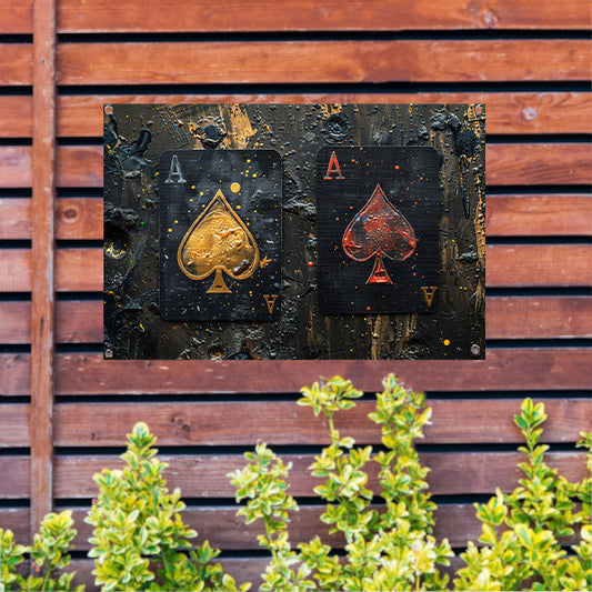 Minimalistisch Speelkaarten in Goud en Rood tuinposter