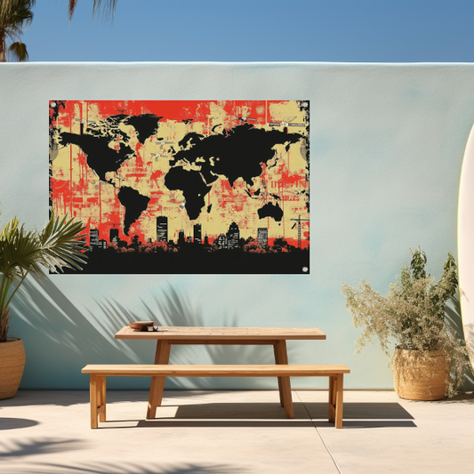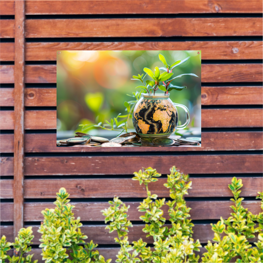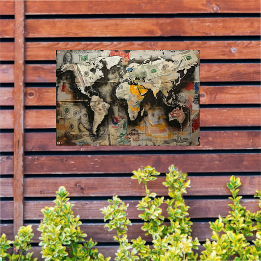 Opgerolde Wereldkaart op Houten Tafel. tuinposter