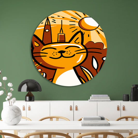 Vrolijk minimalistisch schilderij van een kat aluminium muurcirkel