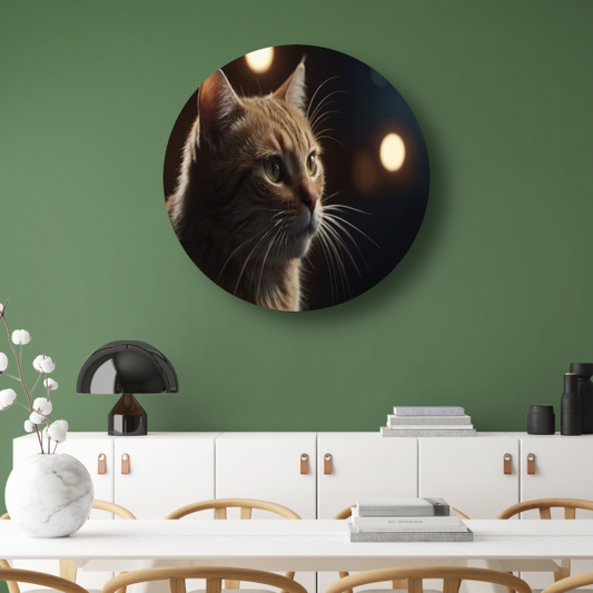 De stille majesteit van een kat bij avondlicht aluminium muurcirkel