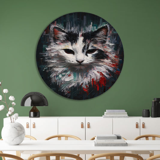 Abstracte kleurrijke kat schilderij in moderne stijl aluminium muurcirkel