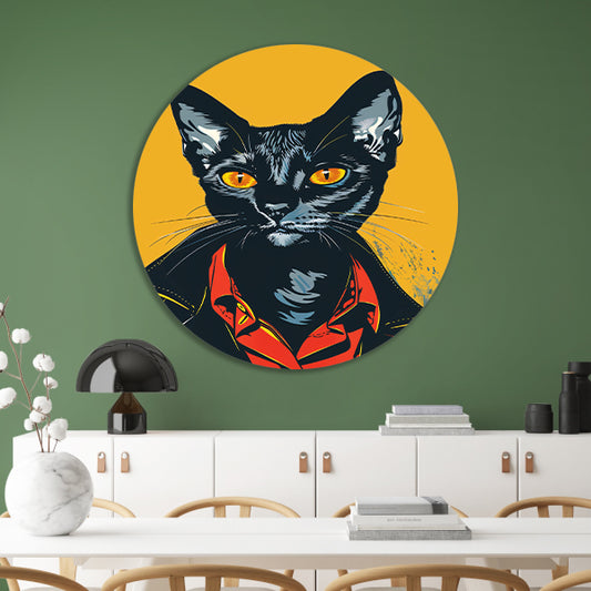 Zwarte Kat met Leren Jas Pop Art aluminium muurcirkel