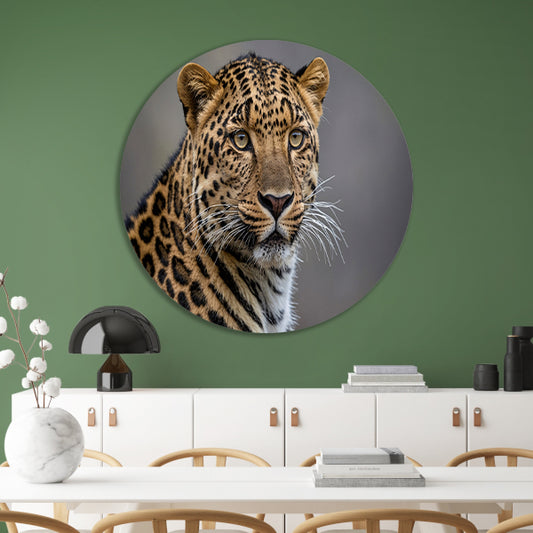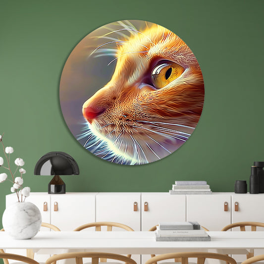 Gedetailleerd realistisch schilderij van een kat aluminium muurcirkel