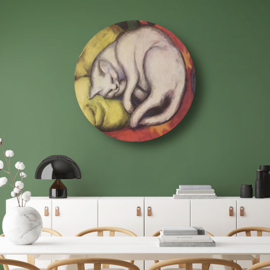 Kleurrijke Abstracte Kat Kunst Print aluminium muurcirkel