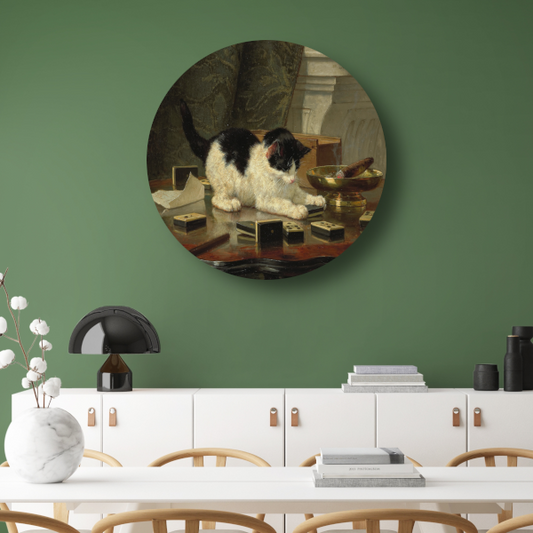 Speelplezier van een Kat - Henriëtte Ronner-Knip aluminium muurcirkel