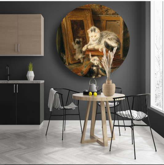 Kittens bij het spelen - Henriëtte Ronner-Knip aluminium muurcirkel