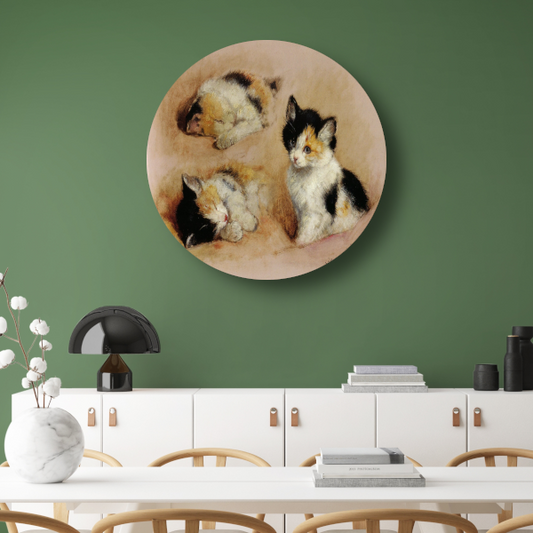 Studies van ontwakend katje - Henriëtte Ronner aluminium muurcirkel