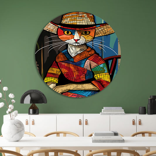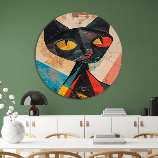 Abstracte kat in kubistische stijl aluminium muurcirkel