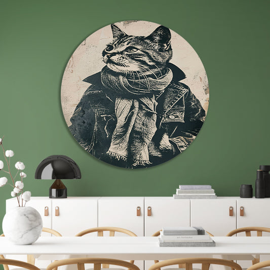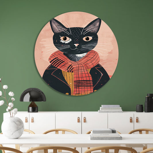 Modern illustratie van een kat met sjaal aluminium muurcirkel