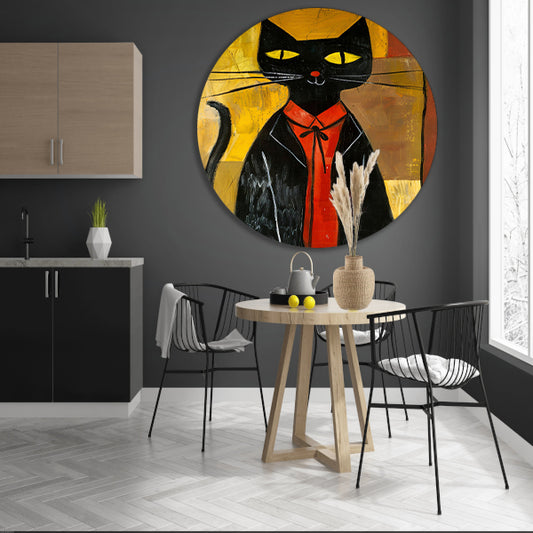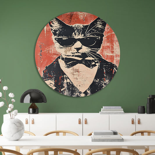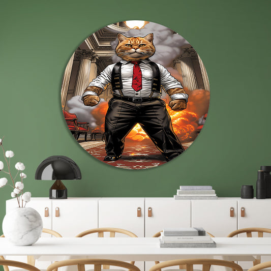 HyperRealistisch kat in pak met explosie aluminium muurcirkel