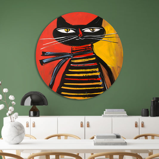 Elegante kat met kleurrijke achtergrond aluminium muurcirkel