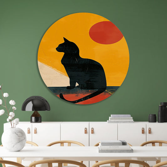 Zwarte Kat in Abstract Zonsondergang aluminium muurcirkel