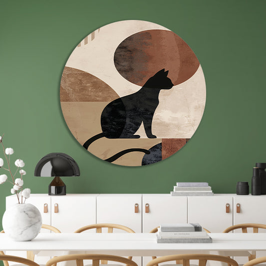 Minimalistische zwarte kat tegen een abstracte achtergrond aluminium muurcirkel