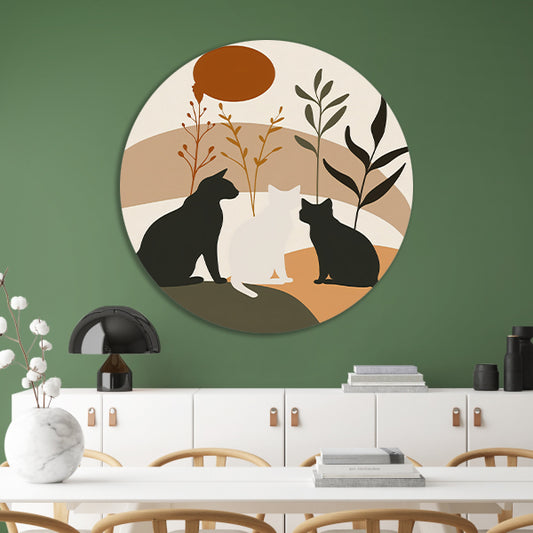 Silhouet van Katten en Planten in Harmonie aluminium muurcirkel