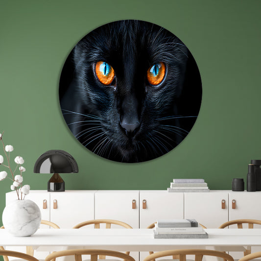 Zwarte kat met blauwe en oranje ogen aluminium muurcirkel