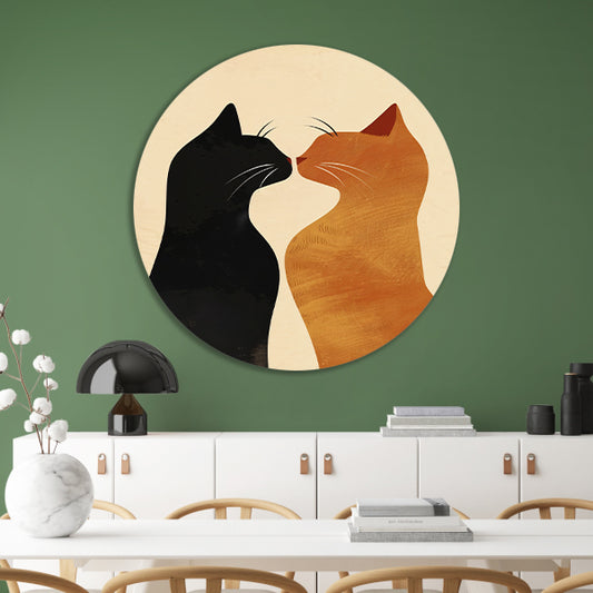 Twee katten in liefdevolle pose met aardetinten aluminium muurcirkel