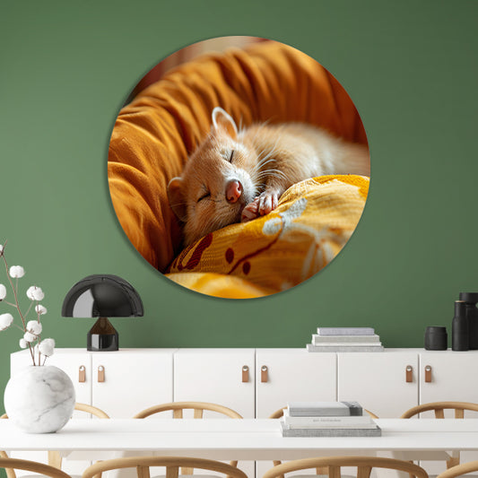 Slapende Fret op Zacht Kussen aluminium muurcirkel
