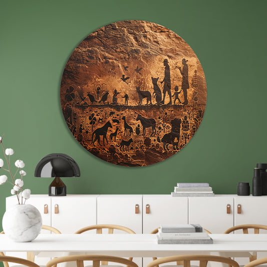 Mensen en Dieren in Sepia Wandeling aluminium muurcirkel