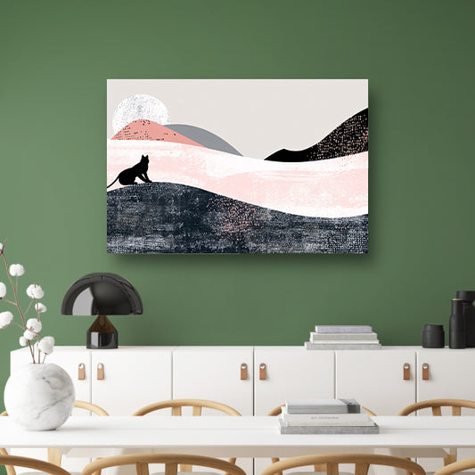 Minimalistisch kunstwerk van kat in abstract landschap poster