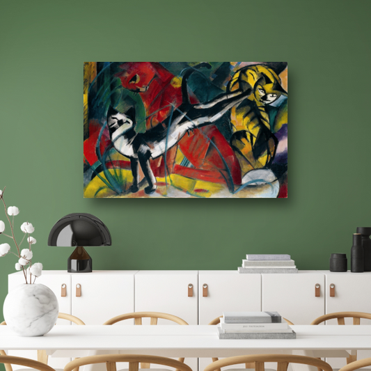 Kat tussen kleurrijke planten in popartstijl acrylglas