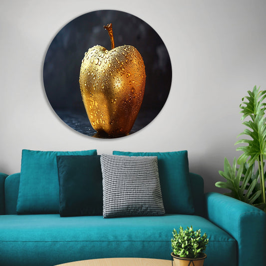 Gouden Appel Bedekt met Sprankelende Waterdruppels aluminium muurcirkel