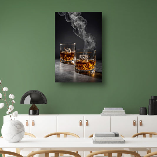 Elegante whiskeyglazen met rook op zwarte achtergrond acrylglas