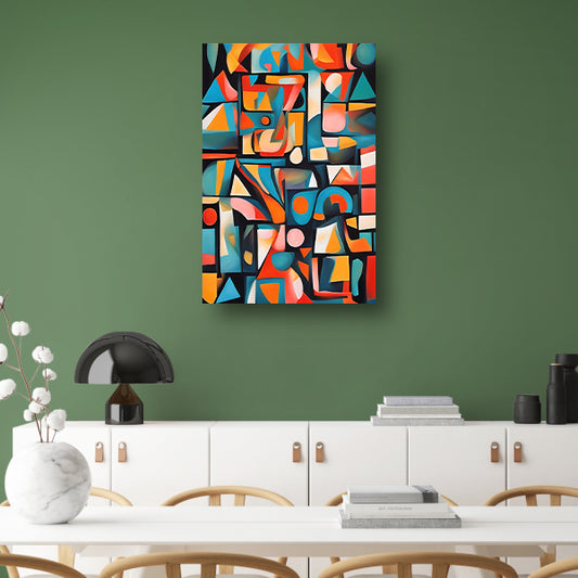 Kleurrijke abstracte kubistische patronen canvas met baklijst