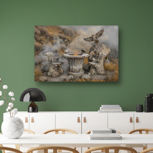 Rustiek Terras met Bistrostoelen bij Schemer canvas