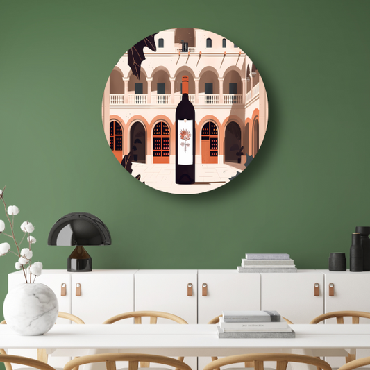 Rustige wijngaard met landhuis onder blauwe lucht aluminium muurcirkel